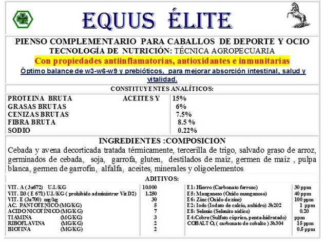 Especialmente diseñado para yeguas,potros a partir de cuatro meses y caballos de alto rendimiento.